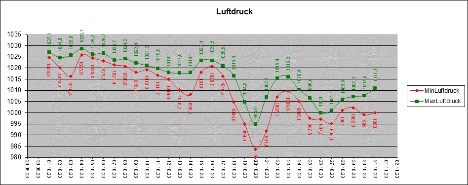 Luftdruck Oktober 2023