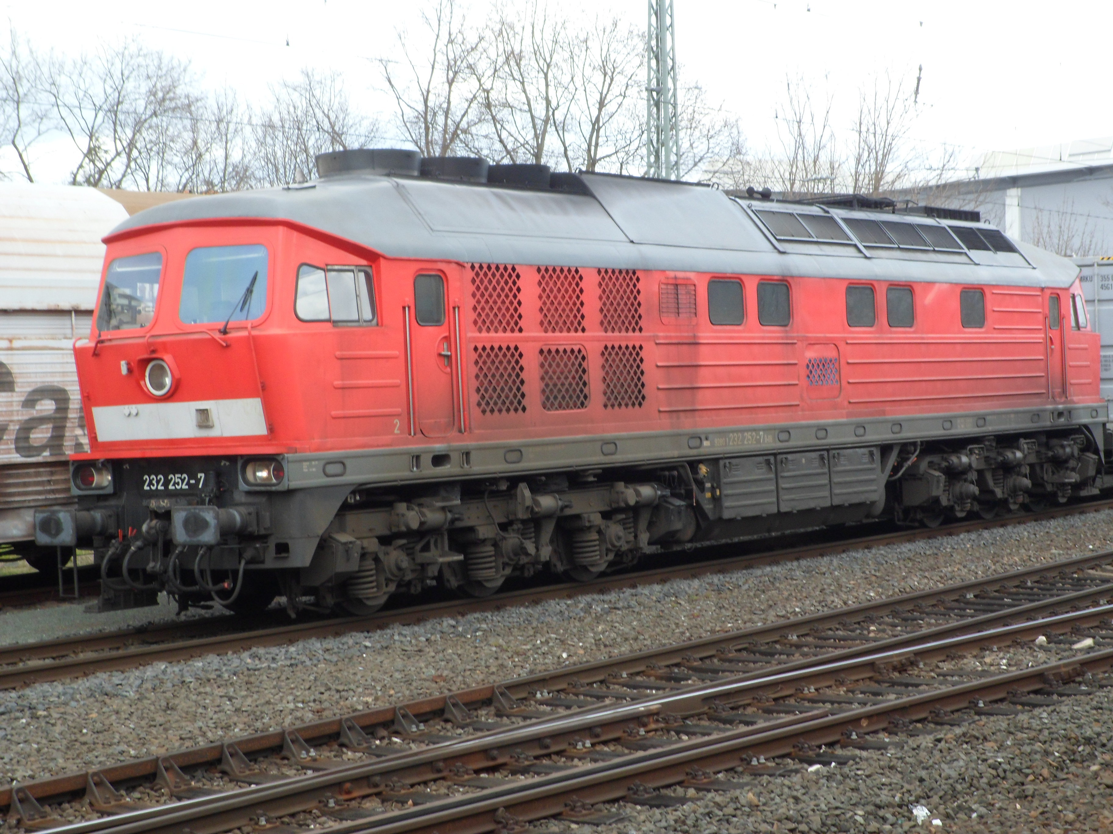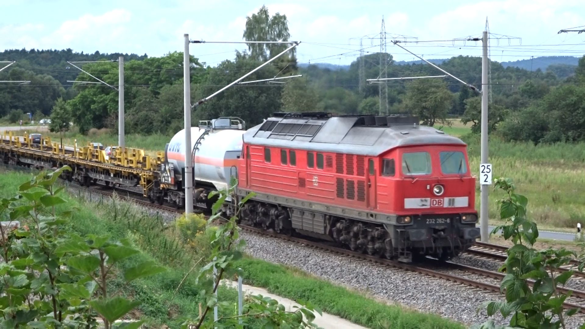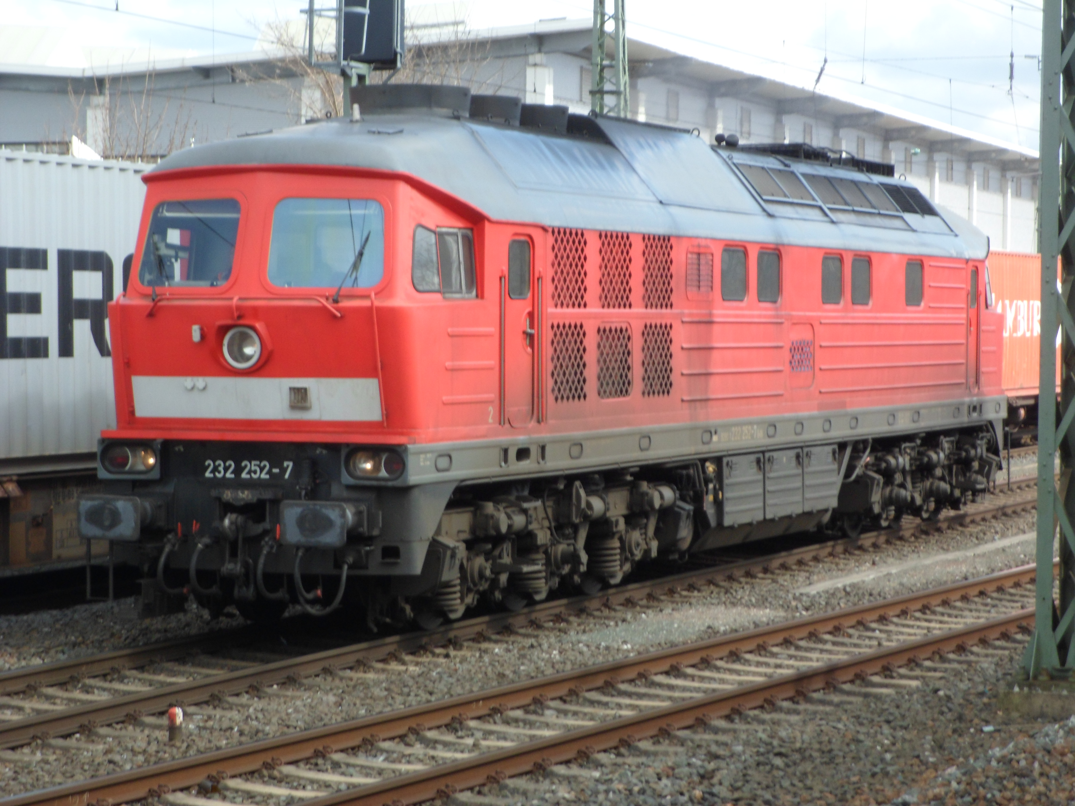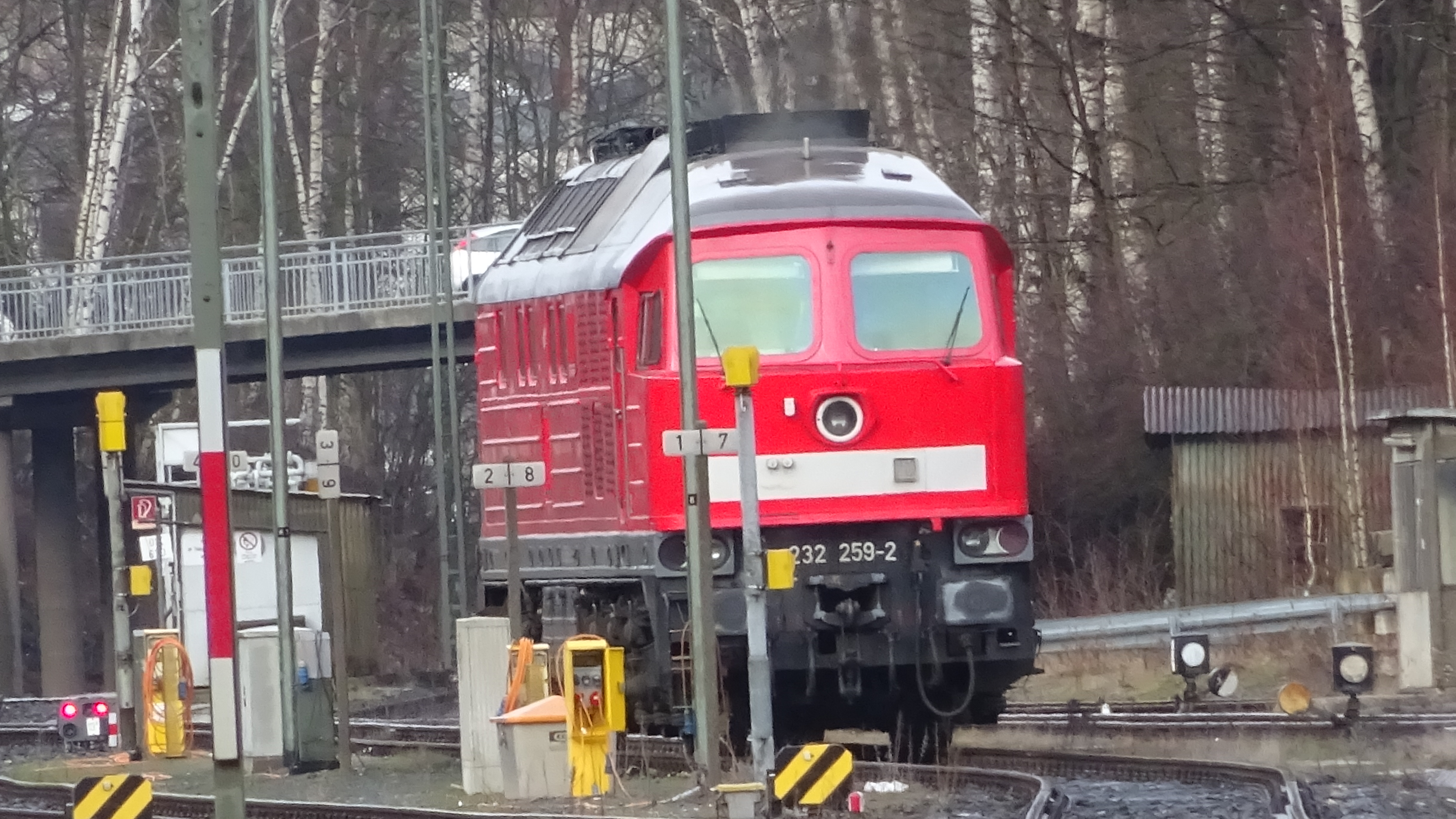 Eine weiß-gelbe 232 vom Zug aus fotografiert in Lichtenfels (20. August 2015)