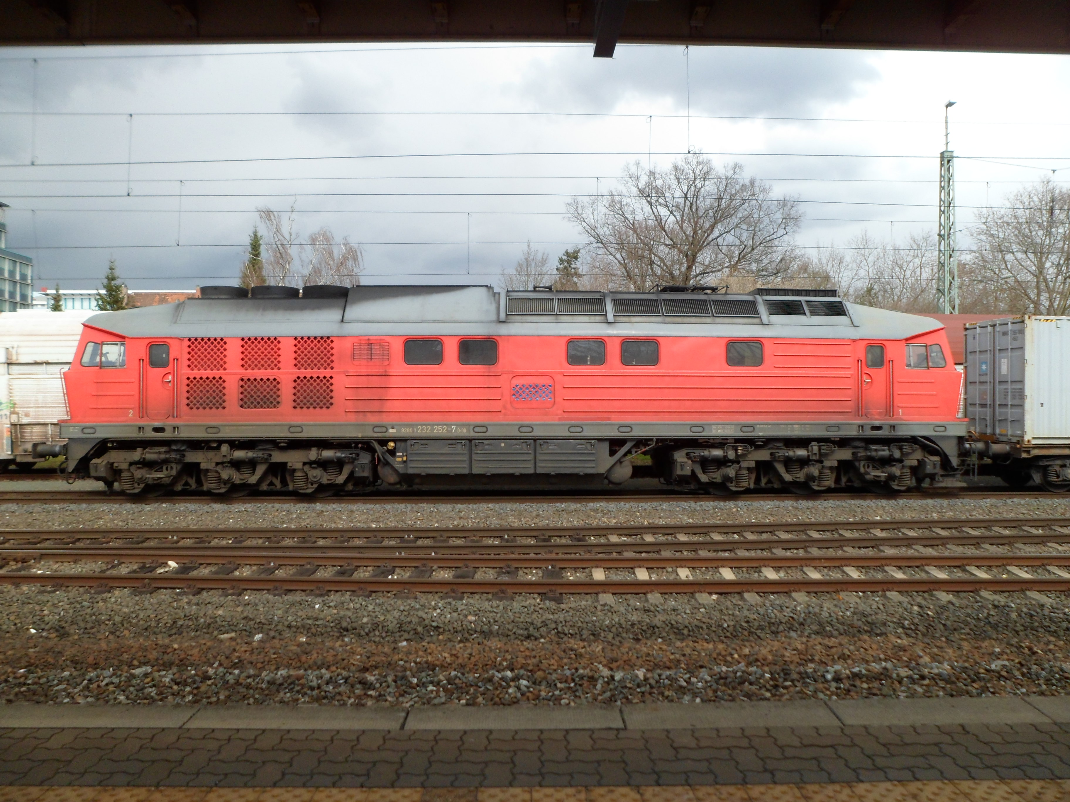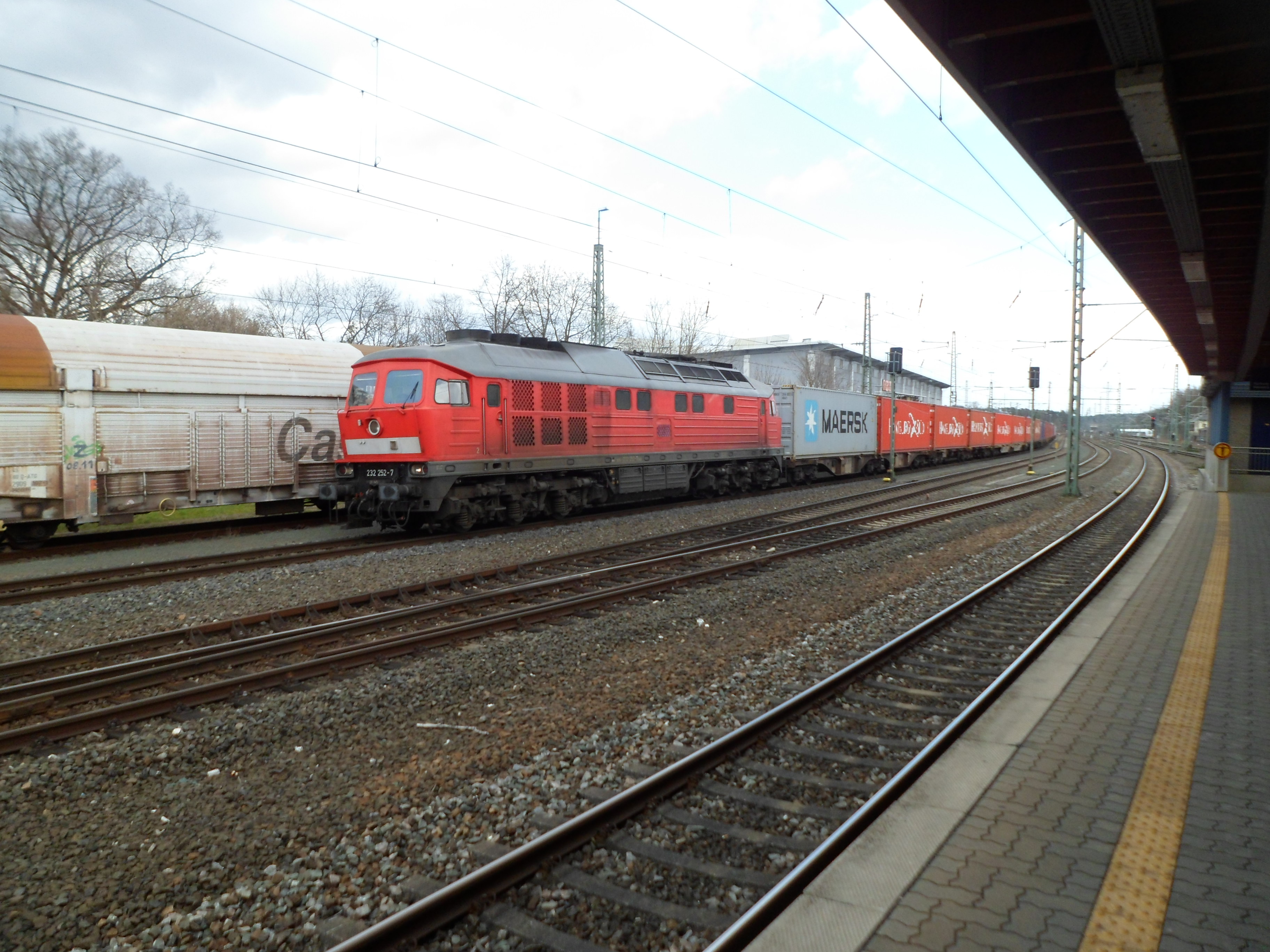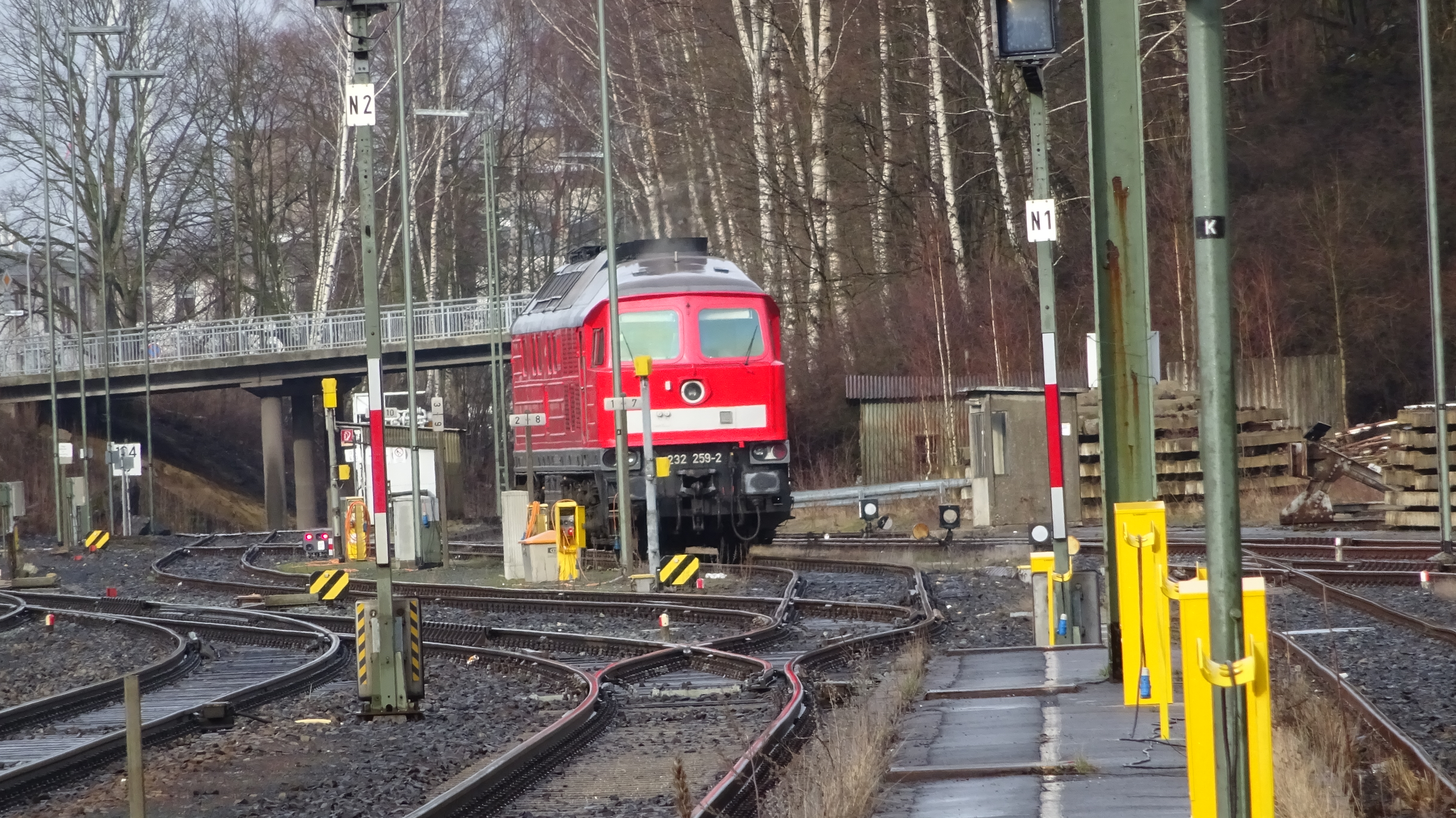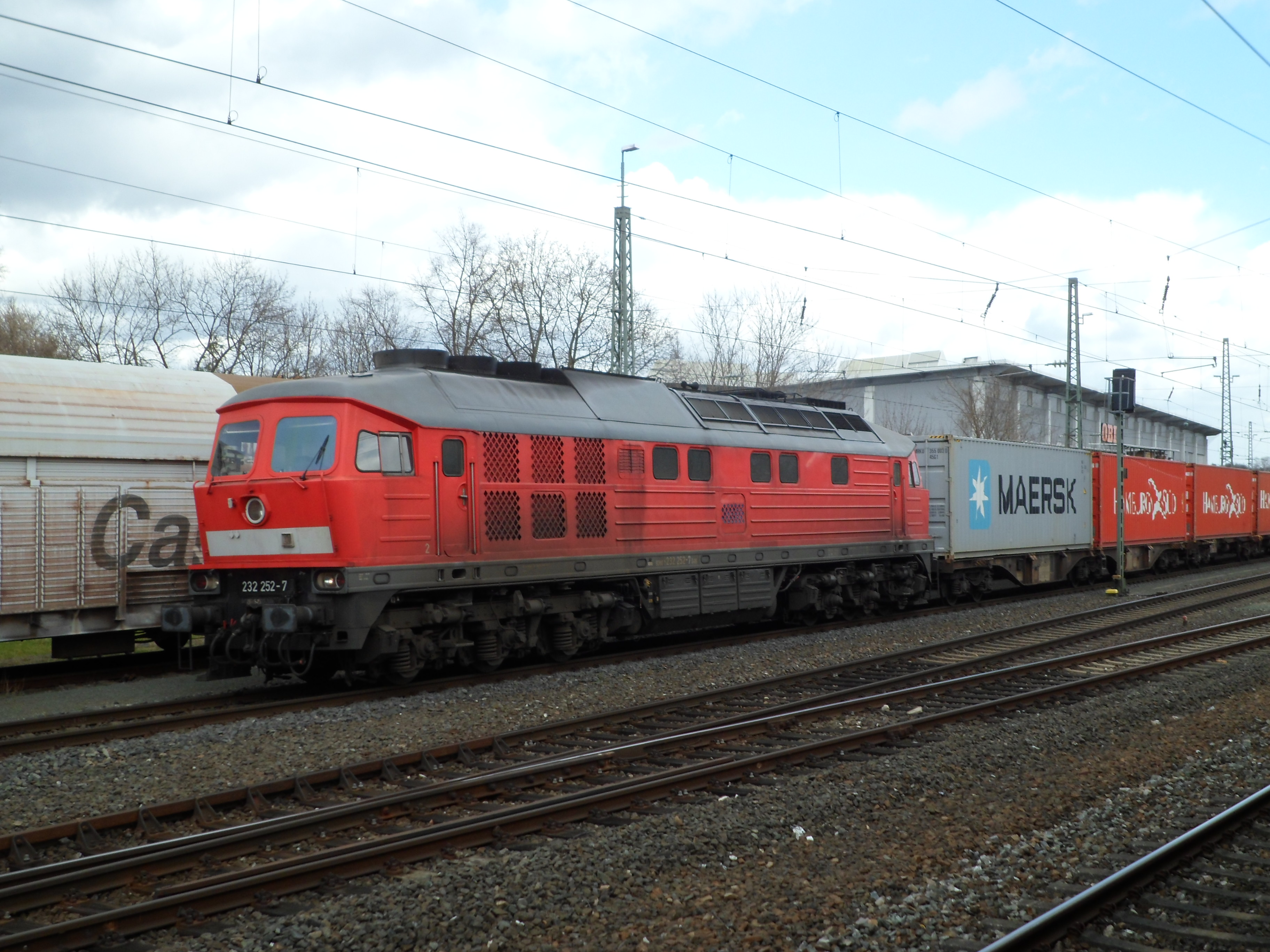 Eine weiß-gelbe 232 vom Zug aus fotografiert in Lichtenfels (20. August 2015)