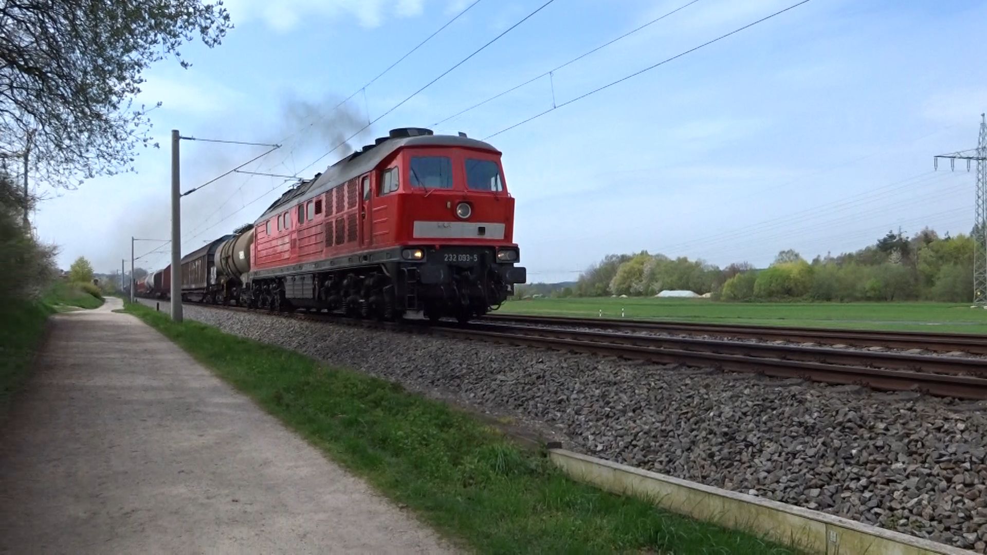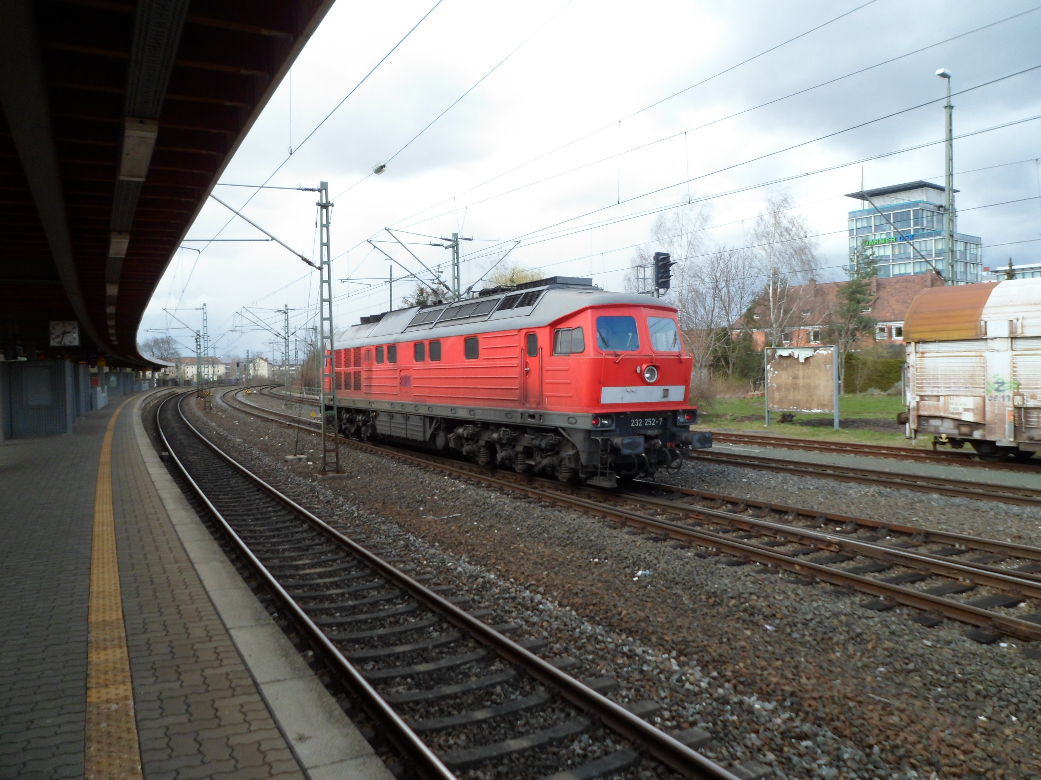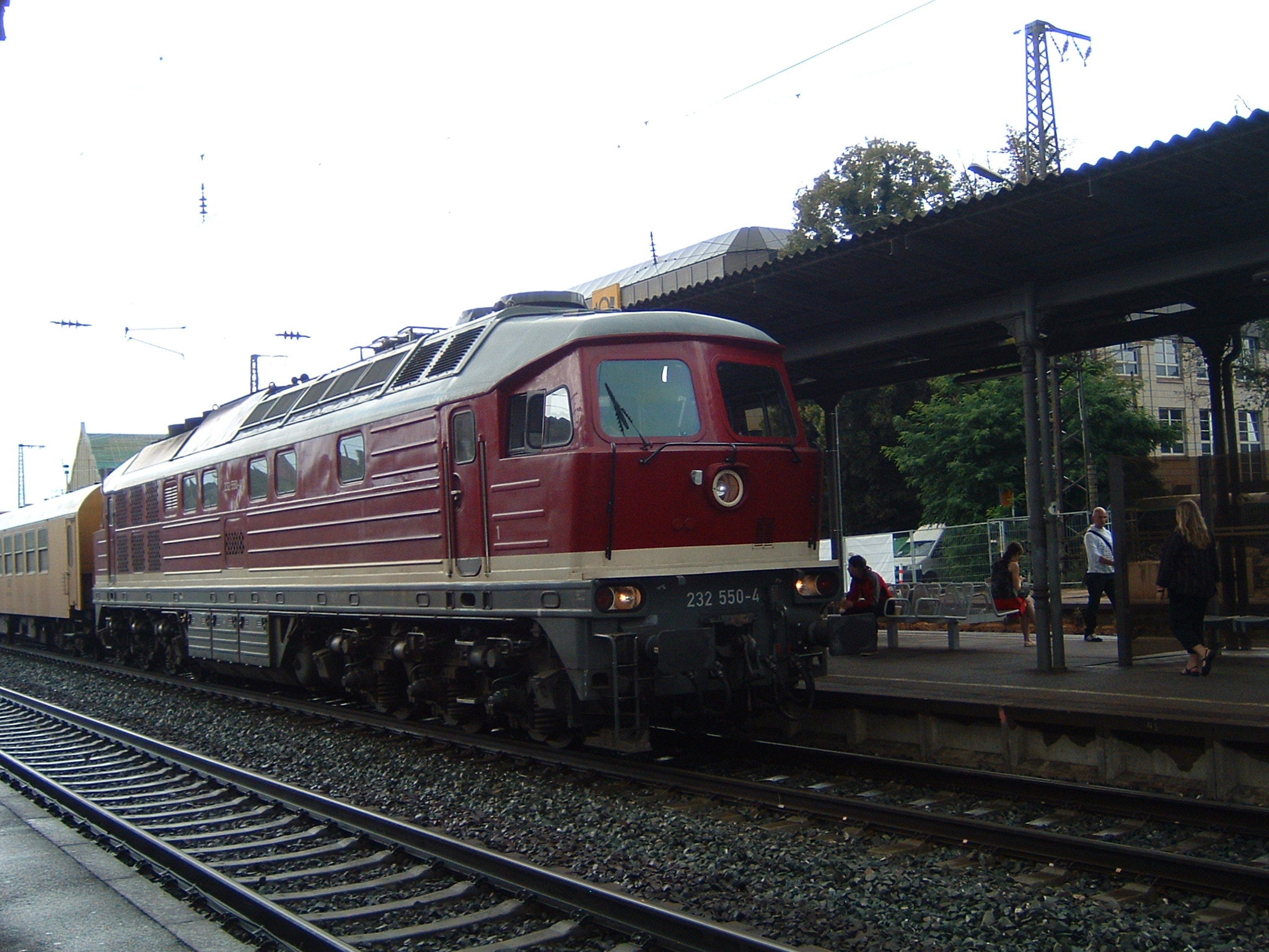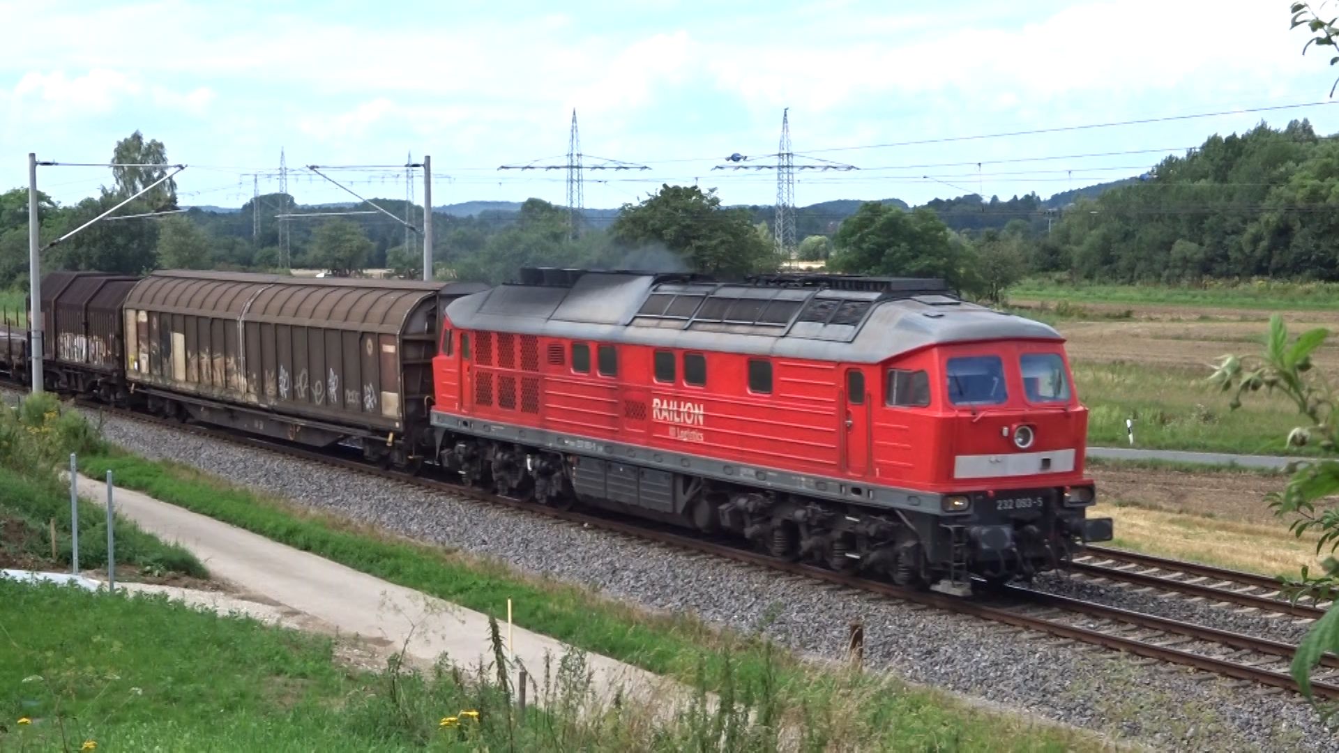 Eine weiß-gelbe 232 vom Zug aus fotografiert in Lichtenfels (20. August 2015)