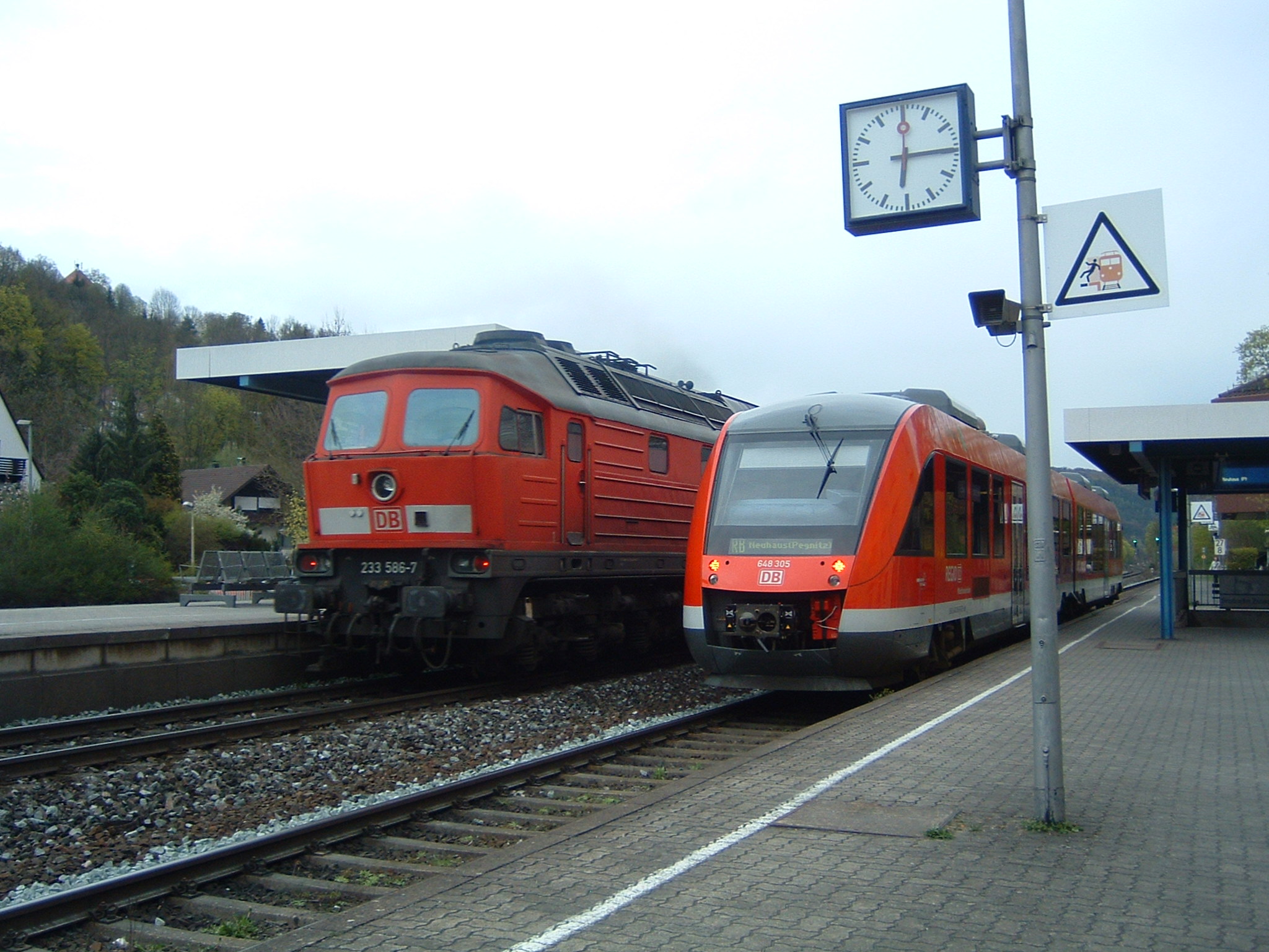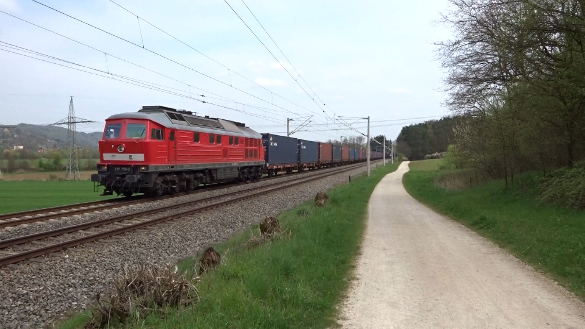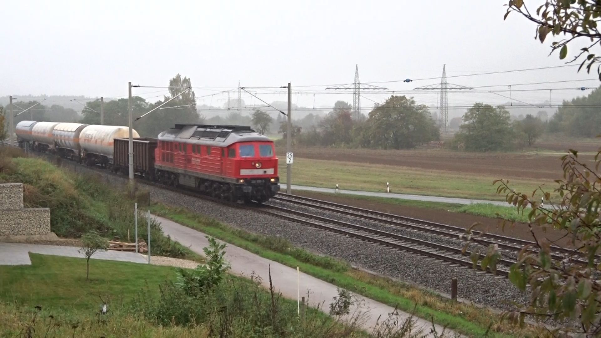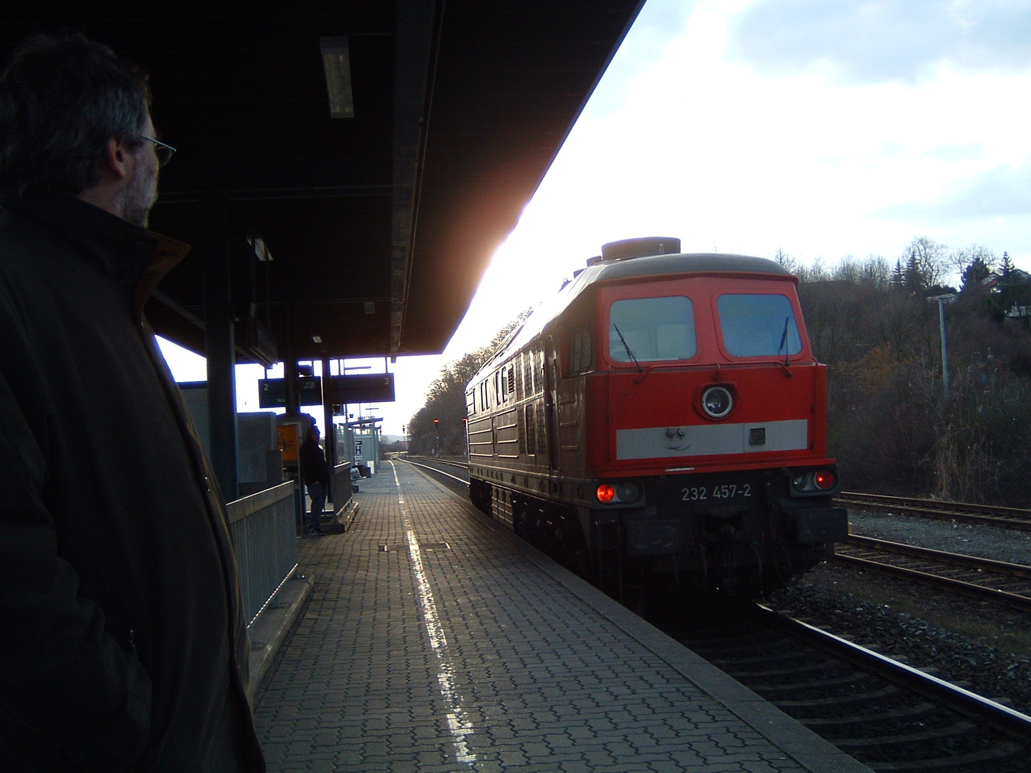 Eine weiß-gelbe 232 vom Zug aus fotografiert in Lichtenfels (20. August 2015)