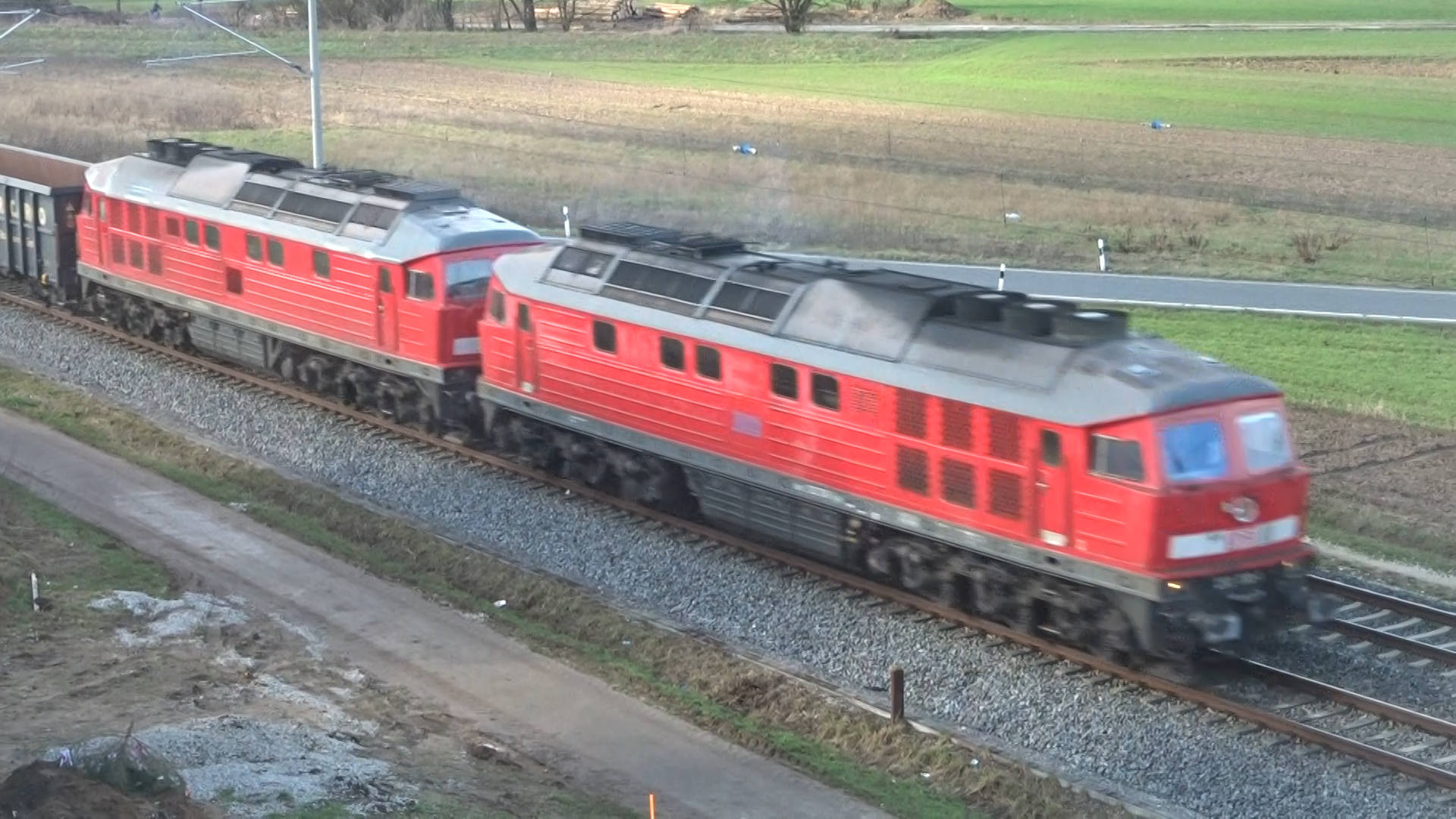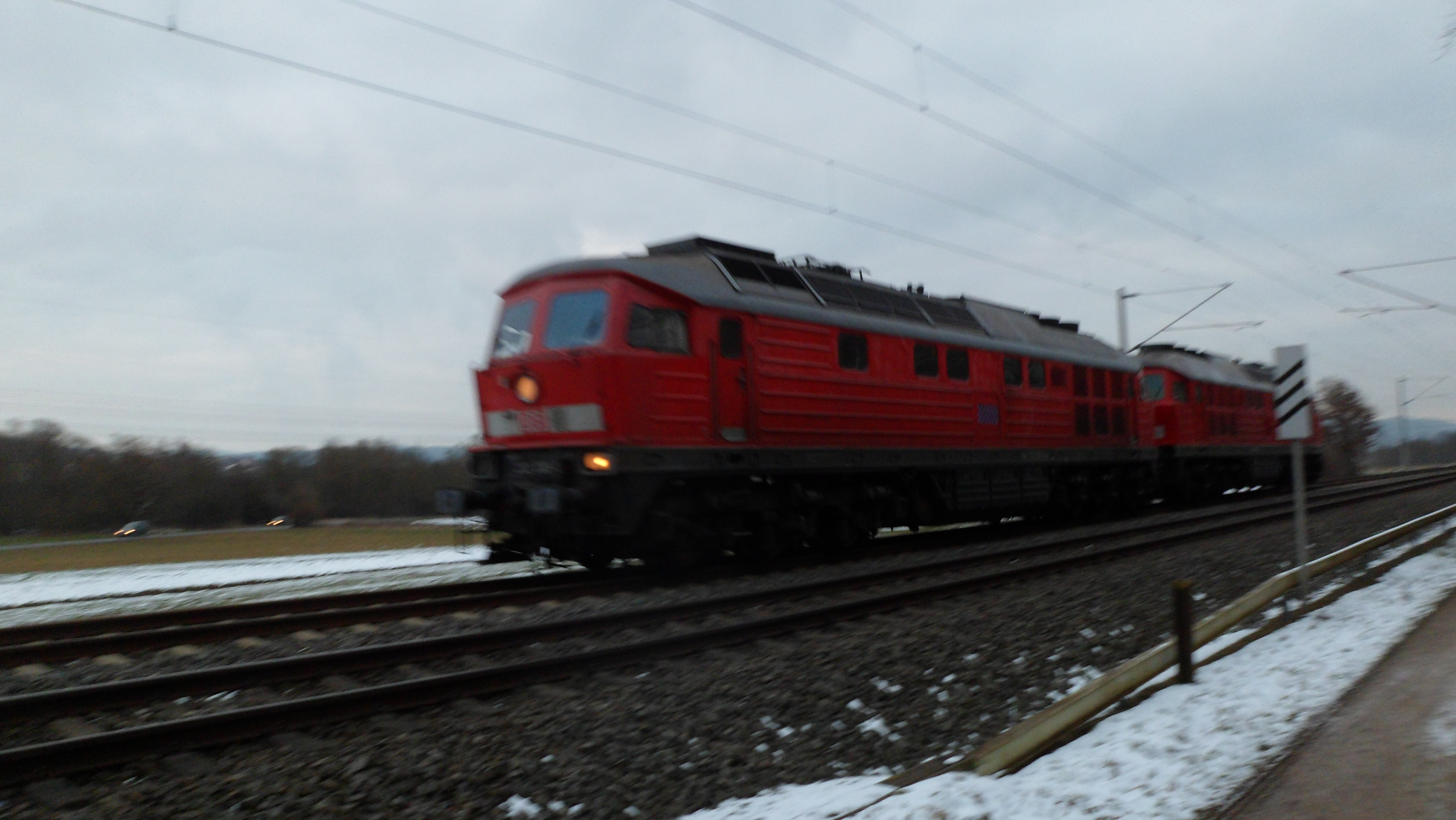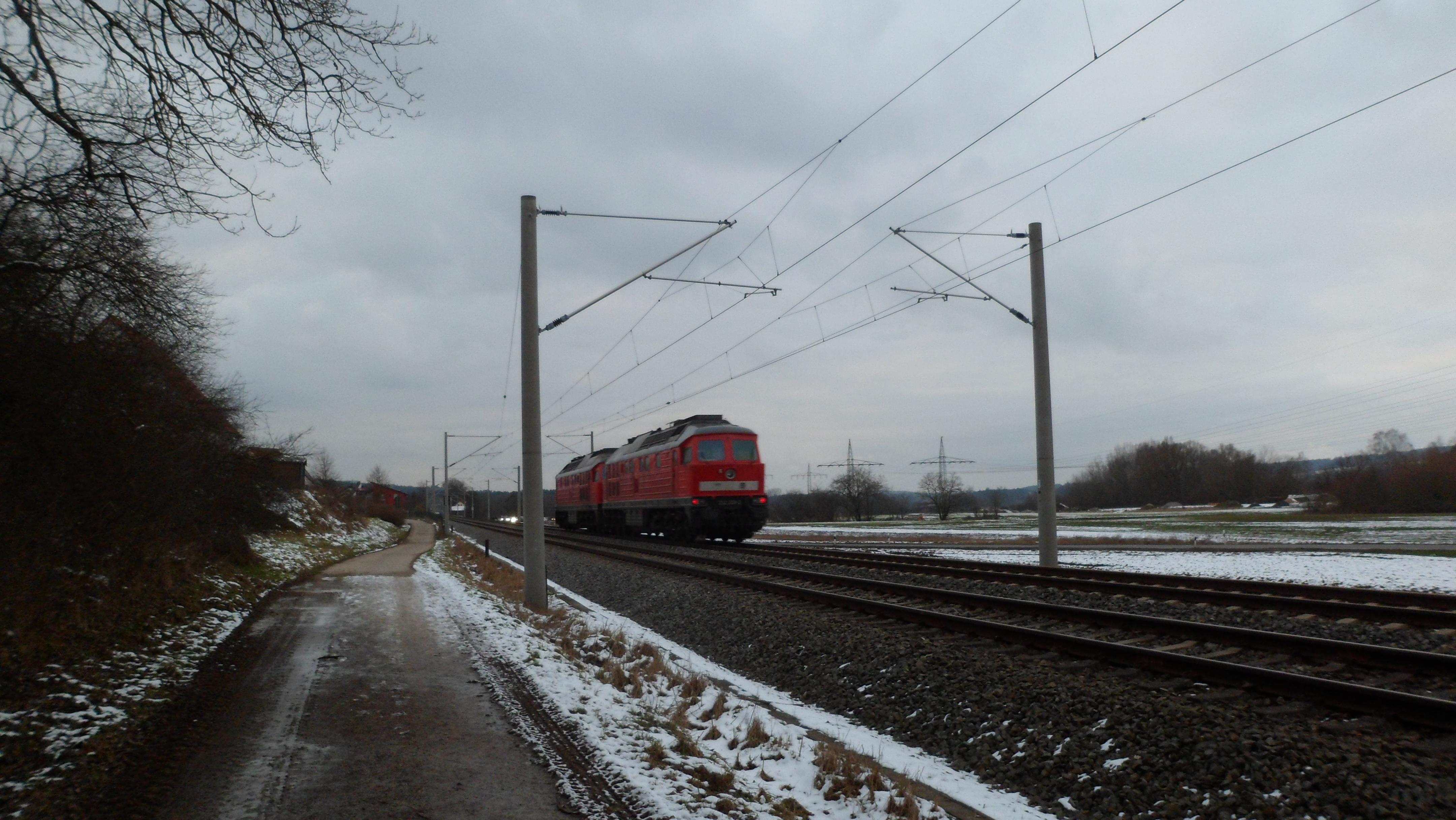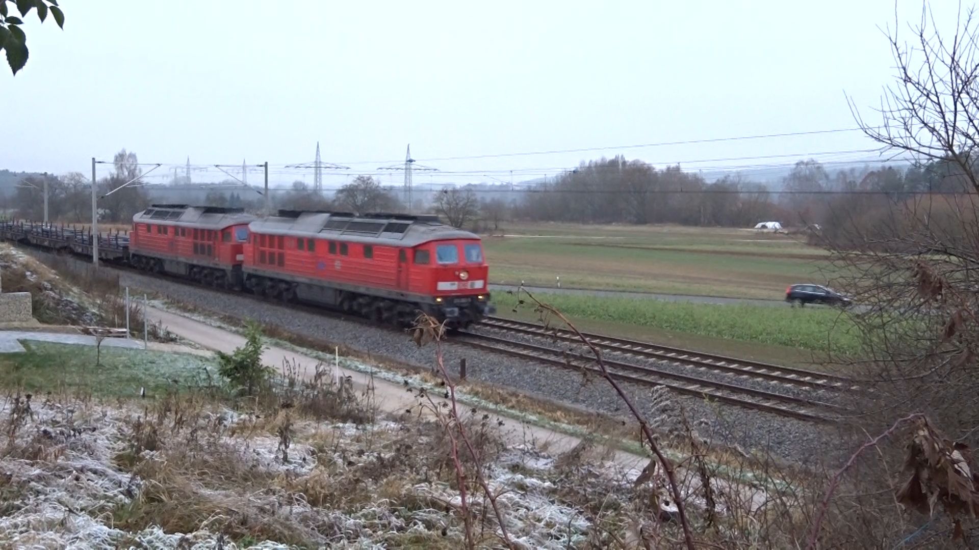 Eine Doppeltraktion BR 232 mit dem GM 60447 in Henfenfeld (12. Februar 2016)
