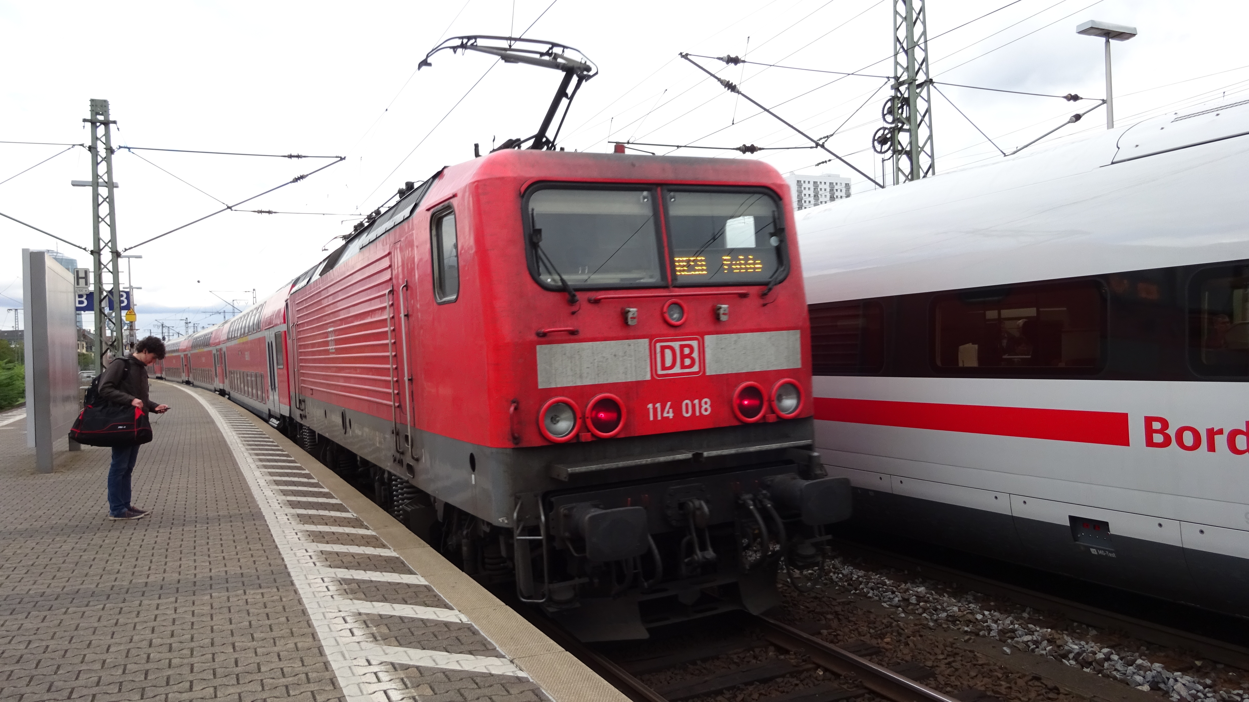 114 008 neben einem ICE 1 in Frankfurt (Main) Hbf (6. Februar 2016)