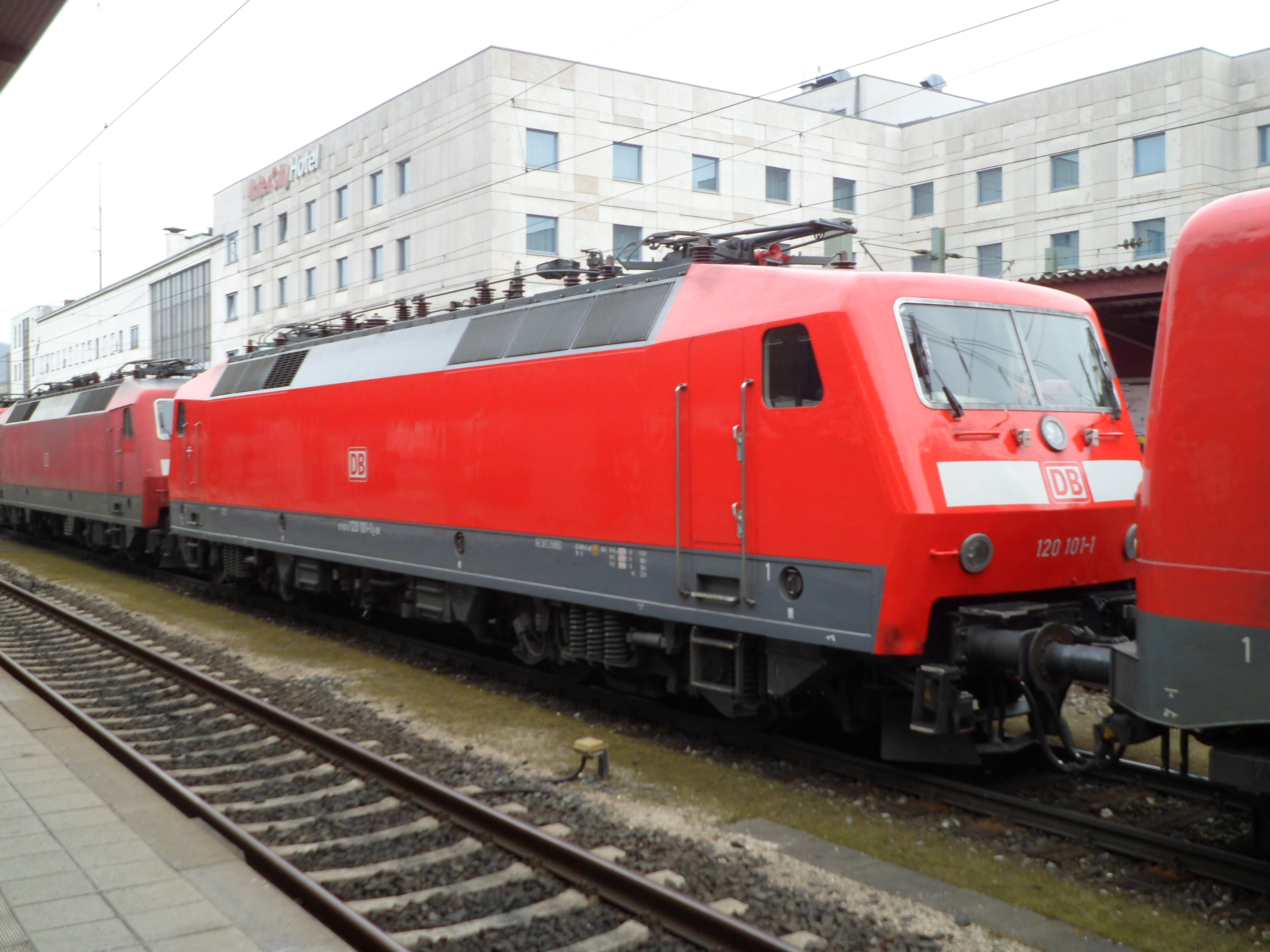 120 101 eingespannt zwischen 120 145 und 115 261 im PbZ 2461 in Ulm (14. März 2015)