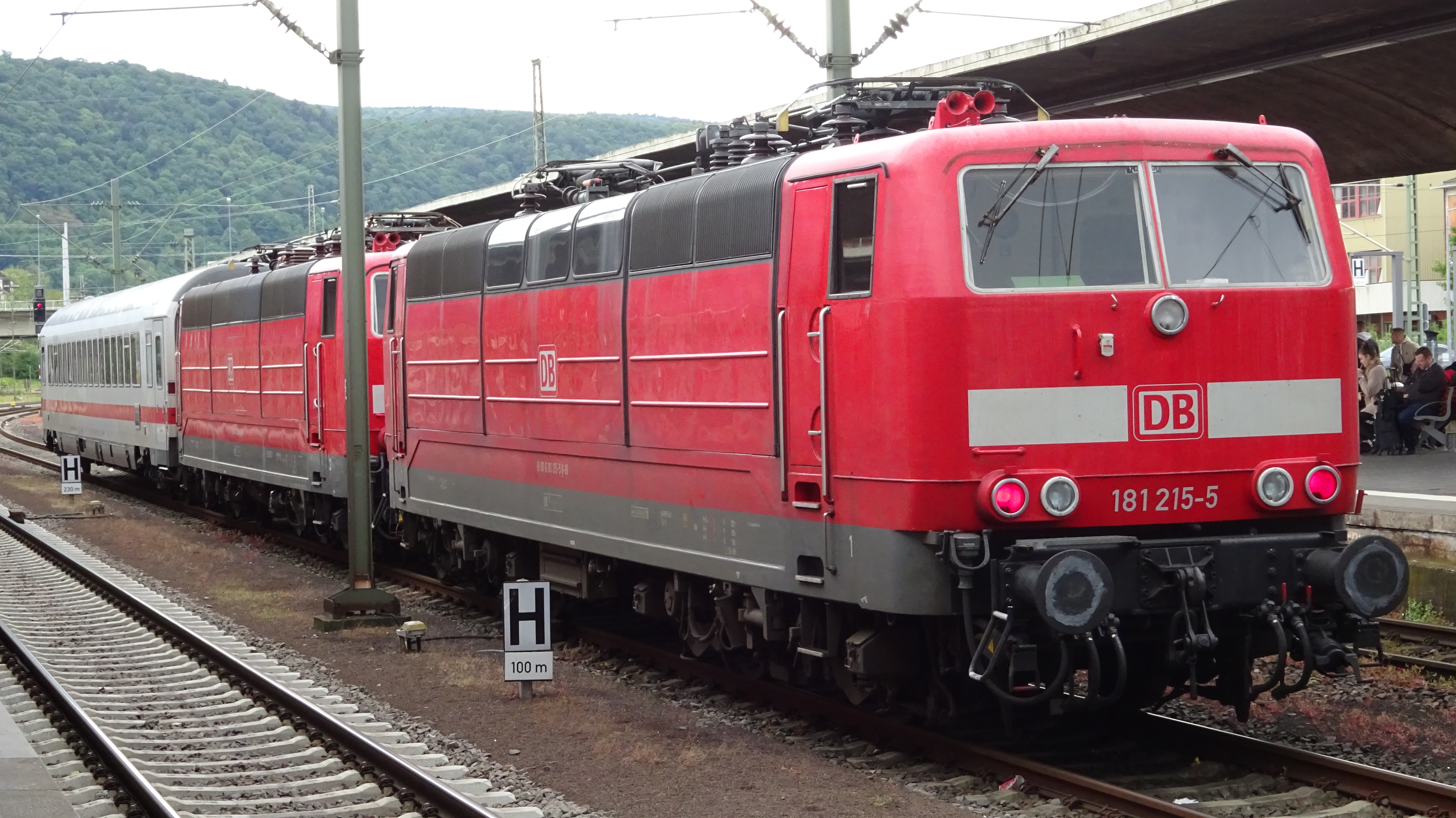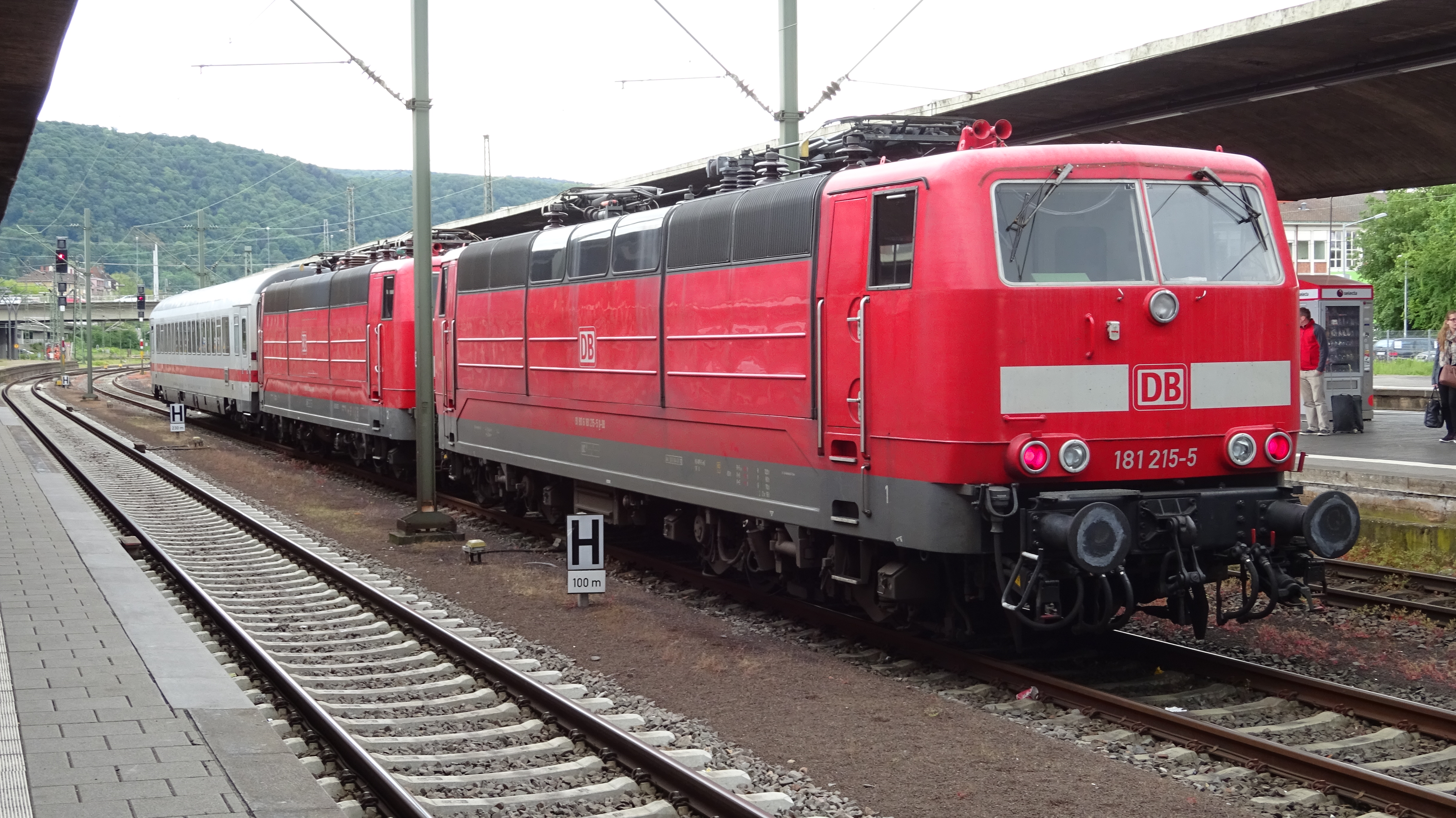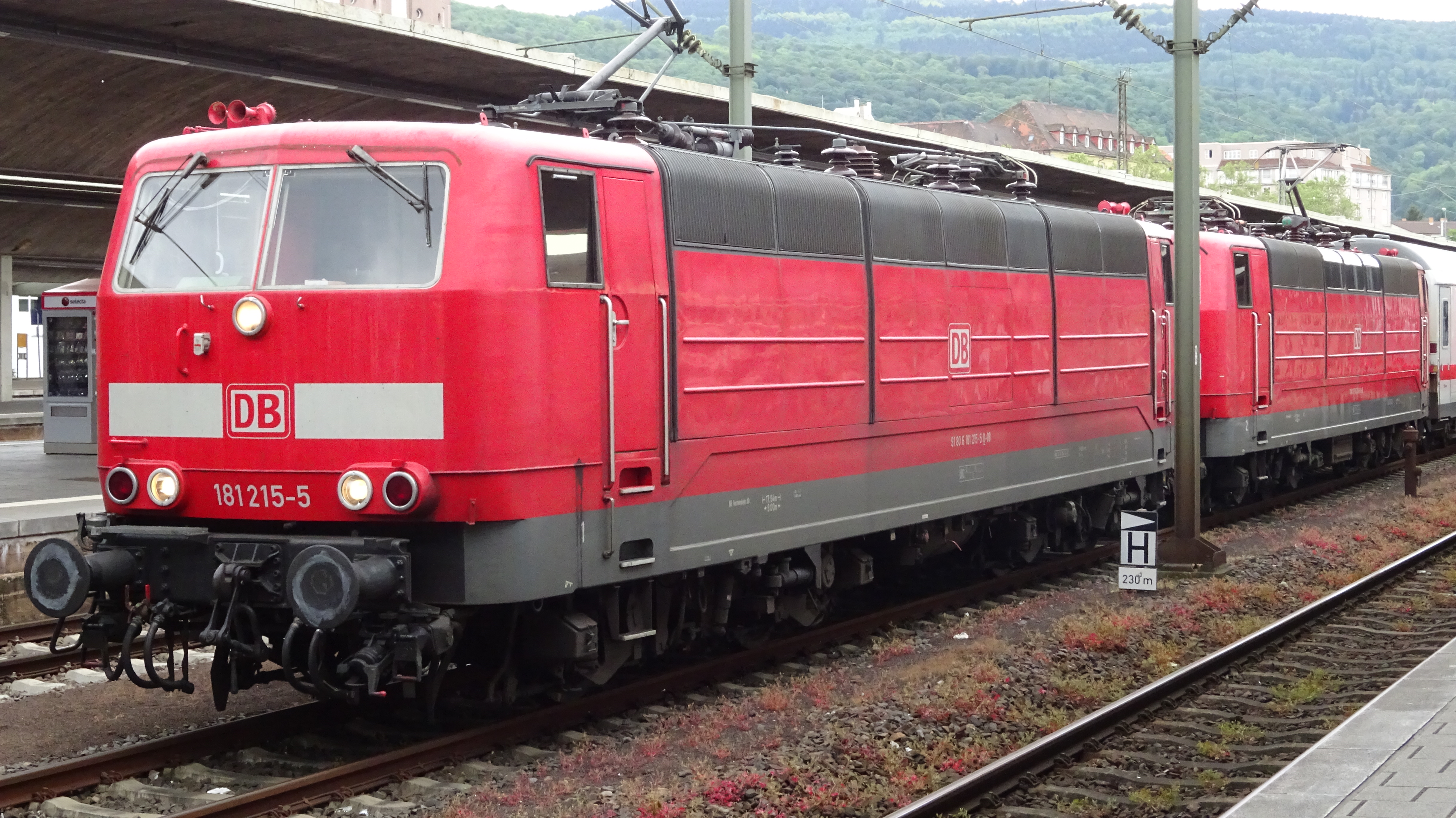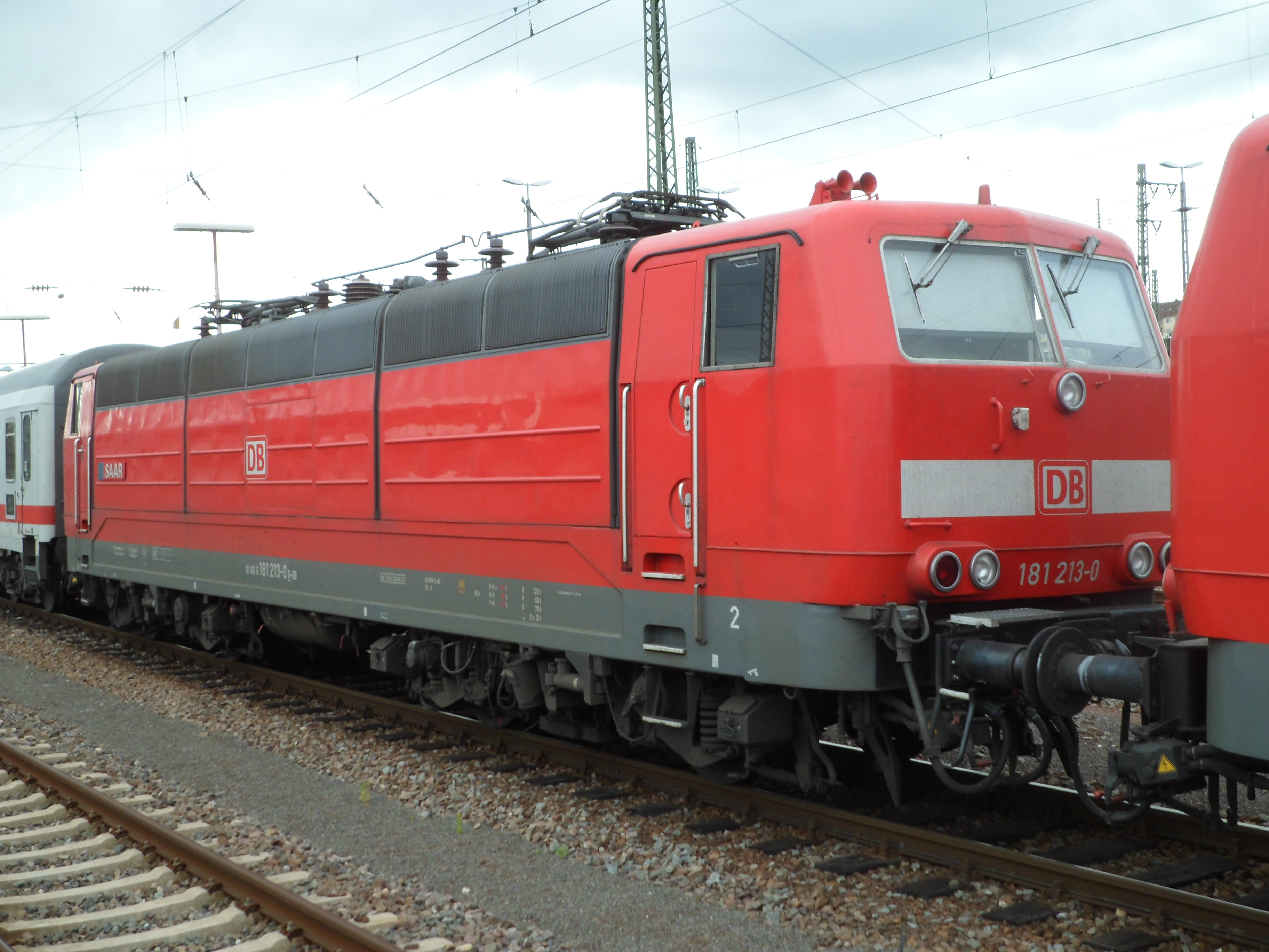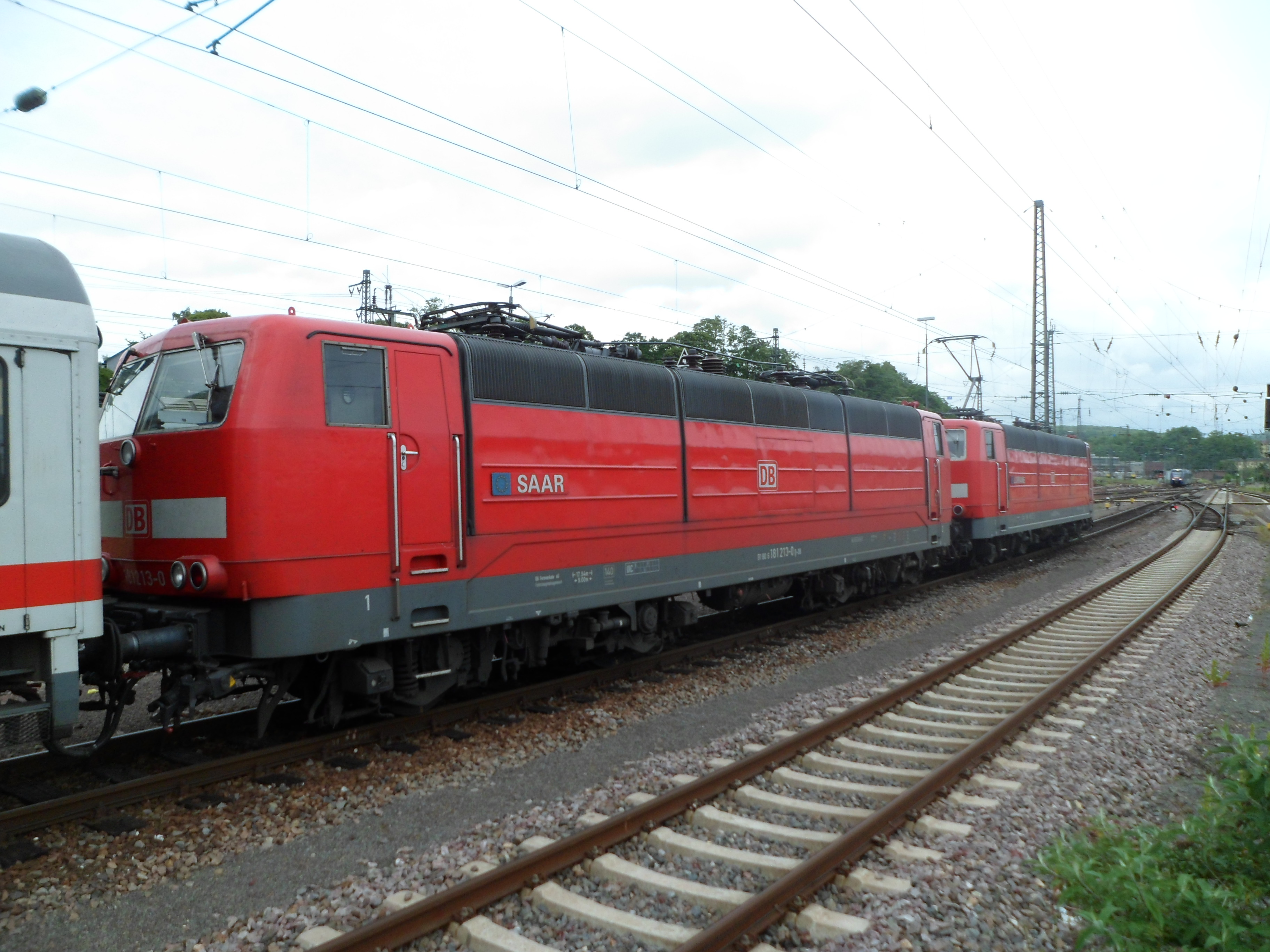 181 213 "Saar" und 181 211 "Lorraine" mit IC 2056 abgestellt in Saarbrücken Hbf (1. Juni 2015)